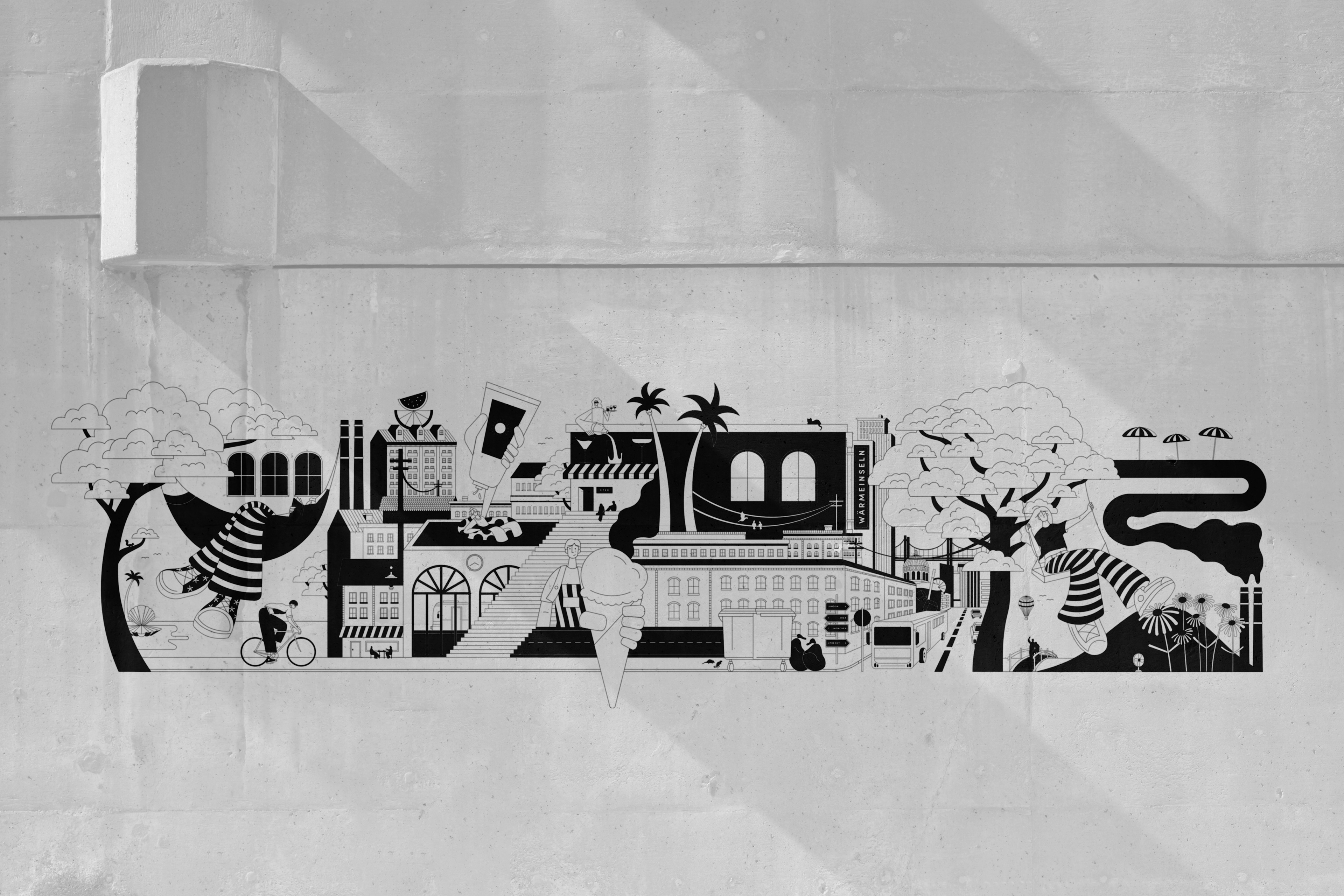 Das Projekt „Heißes Pflaster – Ein Panorama über Wärmeinseln“, das im Rahmen meiner Masterarbeit entstanden ist, behandelt den Wärmeinseleffekt – das Phänomen, dass sich Städte stärker aufheizen als ihr Umland. Ein vier Meter langes, illustriertes Wandbild beinhaltet zwölf Objekte, die mittels Augmented Reality gescannt werden können. Dadurch werden kurze, animierte Erklärvideos zum Thema sichtbar.
